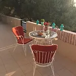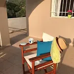 Die 2-Zimmer- Ελαίας Λειμών verfügt über Parkplätze und eine Terrasse mit Aussicht aufs Meer.